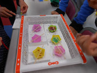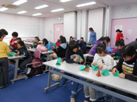 午前は「けん玉ショー」に参加をしました。「ワークショップ」では、けん玉を何度も練習して、上手にできた時の喜びに、みんな満足顔でした。 午後はクリスマスに向けての「手作りキャンドル」「クラフトツリー」を製作しました。 キャンドル作りでは、講師の指導のもとに、星型の容器にローソクを流し入れて、クレヨンなどをけずったり、アイディアをだしながら、ステキな「手作りキャンドル」が出来上がりました。