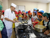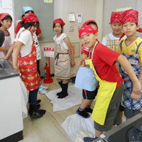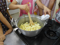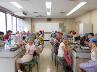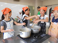 午後は、ジャム作りに挑戦!ブルーベリー・りんご・キウイ・マンゴーの4種類を各班で作りたいジャムにトライしました。出来立てジャムをクラッカーにつけて試食しをして、おみやげ用のジャムも大事そうにパックに詰めて、大満足の子ども達でした。 安全に料理を作るための学習を通して、「食育」の大切さを、感じさせられた講習会でした。