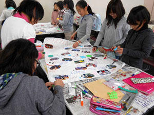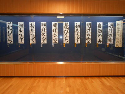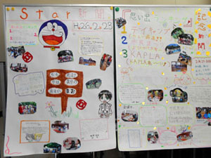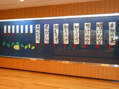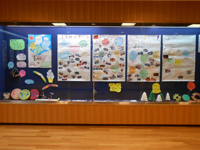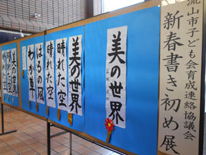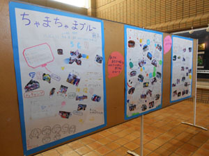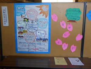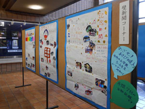 流山市子連活動報告及び『めざせ!あそびの達人』のカベ新聞、新春書初め大会の入選作品などの展示を行いました。
