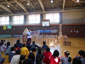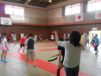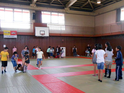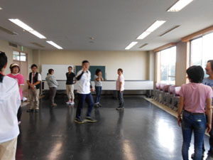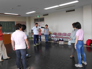 子どもの育成に携わる指導者を対象に、安全勉強会を開催しました。 レクリエーション協会の講師の指導のもとに、身体を動かしながら、身も心も子どもに戻ったように楽しみました。レクをしながら、興味深い話を入れていく講師の進め方に「そうそうウンウン」と納得しながら考えていると・・・次の新しいゲーム・ダンスへと移り、楽しく盛り上がりました。講師から教えて頂いた『やって見せて、言って聞かせ、やらせてみて、ほめてやらねば、人は動かじ』という言葉に感動して、子どもたちと一緒に遊ぶヒントをもらいました。