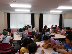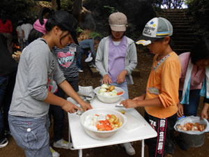 楽しかった思い出のランキング1位は「ディキャンプ」、2位は「市民まつりのアシスタント」で、野外での活動が人気でした。グループでカベ新聞の発表をして、午後はジュニアリーダースの高大生を中心に「レク」と「ドッチビー」で思いっきりあそびました。