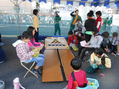 ゲームコーナーは、今年も大人気で415名の来場がありました。射的コーナーでは長蛇の列になり、スタッフも大忙しでした。強風のため、点数表が飛ばされそうになり、ハプニングもありましたが、子ども達の、笑い声でにぎわい、楽しい一日になりました。 |
