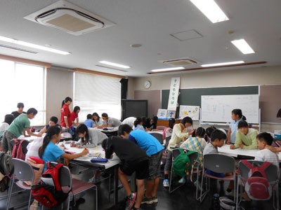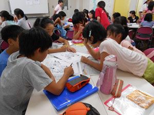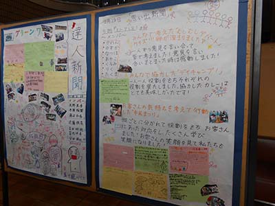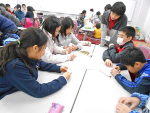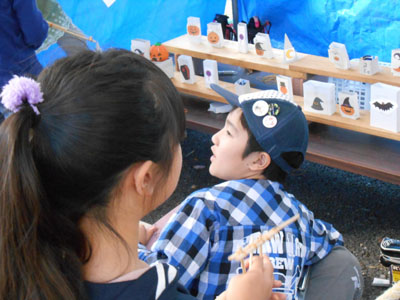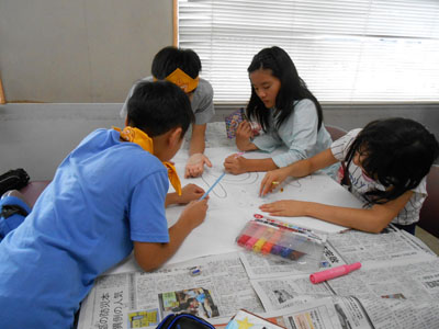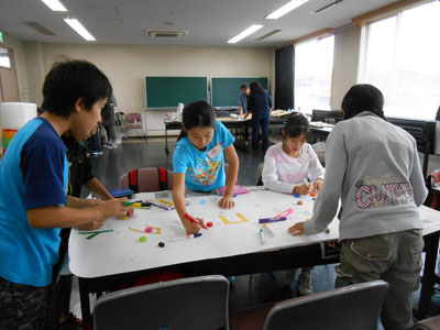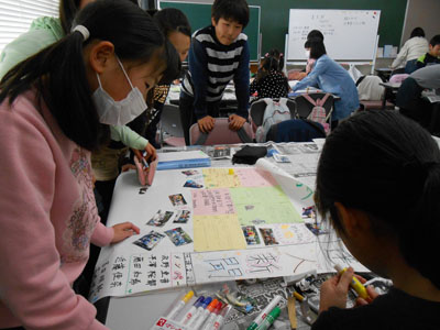 午後は、各ゲームコーナーの看板作りで、各グループでアイデアを出し、製作してとてもすばらしい出来上がりになりました。当日、たくさんのお客さんにあそびに来てもらうのが、楽しみのようすでした。