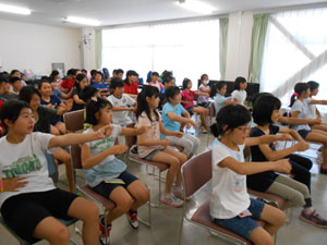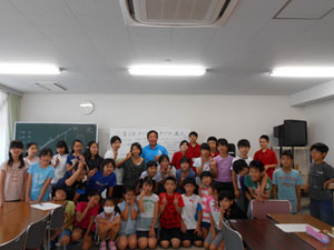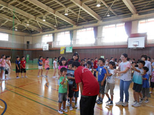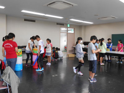 市内の小学5・6年生を対象に市子連主催の、めざせ!あそびの達人(全7回予定)が34名の受講生、中高大リーダース、役員の参加で開催しました。