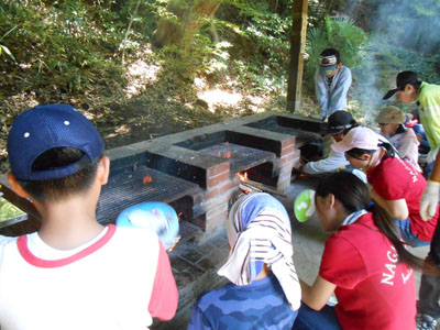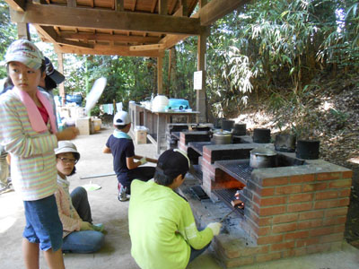 昼食の準備では、火おこしから始まり、飯ごうでごはんを炊き、野菜なども、自分達で切ったりと、汗をかきながら、頑張っていました。