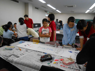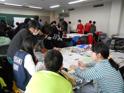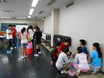 市民まつり市子連担当ゲームコーナーの、アシスタントとして活動するために必要な、準備をしました。自分たちで実際あそんでみて、様々な問題点を話し合いました。