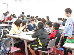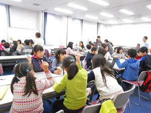 今回のねらいは、イベントを企画するためには、準備、話し合いなどの、仲間との事前活動の必要性を知ることでした。子ども達は、あそびのシミュレーションを通して、自信がついたようで本番での活躍が期待できそうです。 |