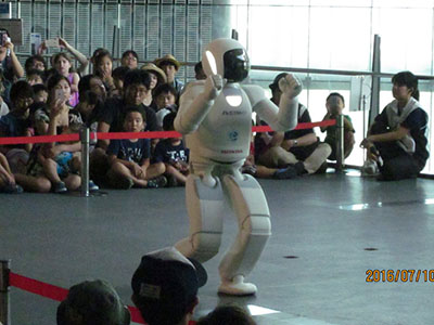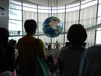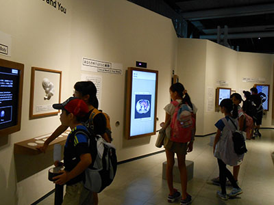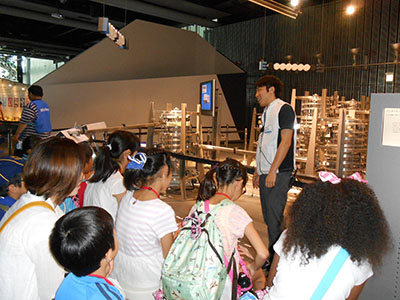地球・生命・宇宙・人間などにスポットをあてた展示では、ゲーム形式で実際にふれたり、動かしたりと、あそびながら科学の楽しさを学びました。科学専門家による子ども対象のトークに参加したグループも楽しかったようです。ロボットコーナーでは、「オトナロイド」「コドモロイド」などのアンドロイドと会話ができて、びっくり!また、二足歩行ロボット「ASIMO(アシモ)」にも会えて、アシモが歩いたり、観客に話しかけたり、上手に歌ったりと、本当に、未来にふれるひとときでした。予約制の半球状の映像シアター「ドームシアター」では、3D用のメガネをかけて、3D映像を楽しみました。朝早くから、バスツアーに出かけて、帰りのバスの中では少しおつかれ気味の子ども達でしたが、「アシモがかわいかった」「科学のことが少しわかって良かった」「ドームシアターは3D映像ですごくおもしろかった」などの意見があり、楽しい一日が過ごせたようです。今回の研修では、科学の体験とともに、公共の施設で活動する時のマナーなどを学びました。