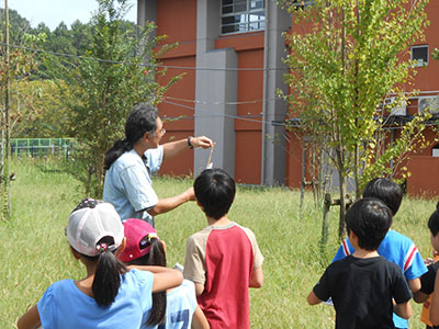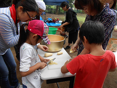 自然の中で、リーダースのお兄さん、お姉さんと一緒に親子で共有の時間を過ごしました。