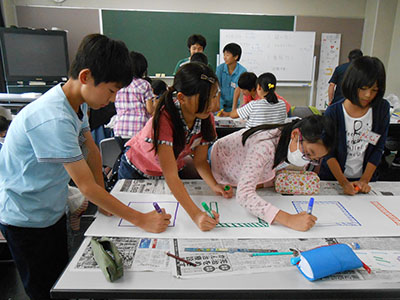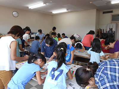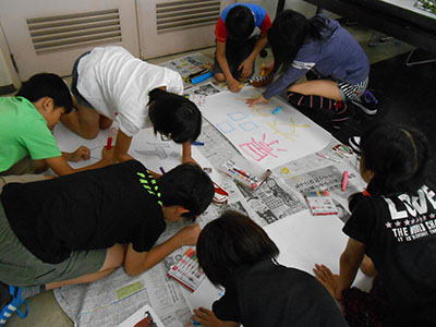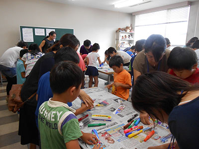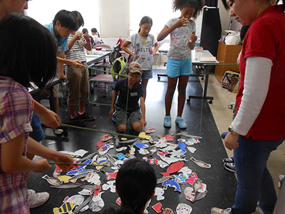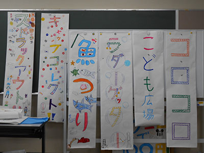 午後は、担当するゲームコーナーの看板作りで、班ごとに、看板の大きさを計って、サイズの確認から始まり、デザインを考える人、下書き、色つけ係、イラスト係など班のみんなで協力して、作成しました。ステキな看板で、当日がとても楽しみです。