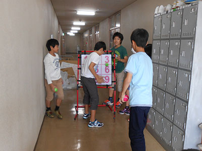 午前は、まず市民まつりゲームコーナーの担当を決めて、各グループで、当日あそびに来る子ども達に、あそび方を教えられるようにシミュレーションしました。