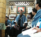 日野ボランティアガイドの吉川さん 峯岸局長をはじめとする日野新選組同好会の隊士たち |