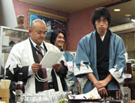 土方陽子さんのあいさつの冒頭で、「今年は函館や会津など何処へ行っても、黒と赤の隊服を見ると、また流山さんも来ているねとすぐに分かりました。ステキな隊服ですね」と、この上ないありがたいお言葉を頂戴しました。おみやげや新選組さんでも、かっこいいねとほめていただき、本当にこの一年半、黒赤の隊服が、多くの方々との交流にも大変役立ったと思います。基本デザインを考えてくれた中学生にもたっぷりと御礼をしなくては・・・。隊務録も好評でしたが、流山にとって今年最大の