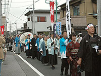 ↑源三郎と彦五郎子孫、続いて滝野川隊。 |