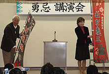 ↑新選組流山隊より幟旗を贈呈。 |